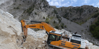 L’escavatore Hyundai HX520L protagonista nel bacino marmifero di Colonnata a Carrara